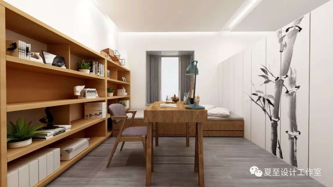 书房依旧采用木色家具,一幅竹的水墨画与木色结合,带给你诗情画意。