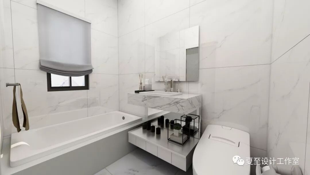 主卫的整个空间以白色大理石为主,营造干净而宽敞的环境。