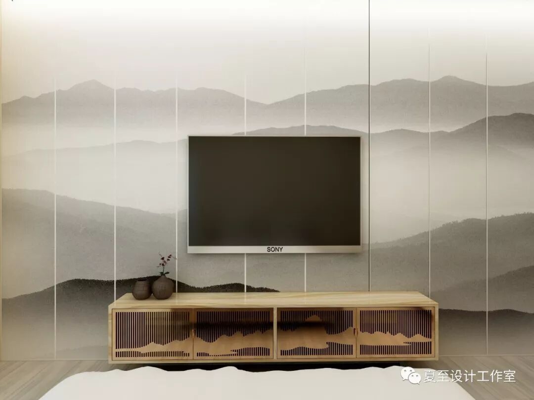 淡淡水墨画的背景墙让房间有了意境,也有了内容。