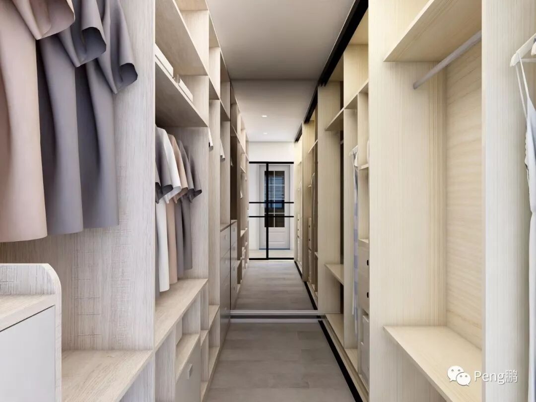 追求生活品质衣帽间是不可缺少的,衣帽间我单独分了个空间,让用户有足够的空间来放置自己喜欢的衣物,鞋子,帽子等等
