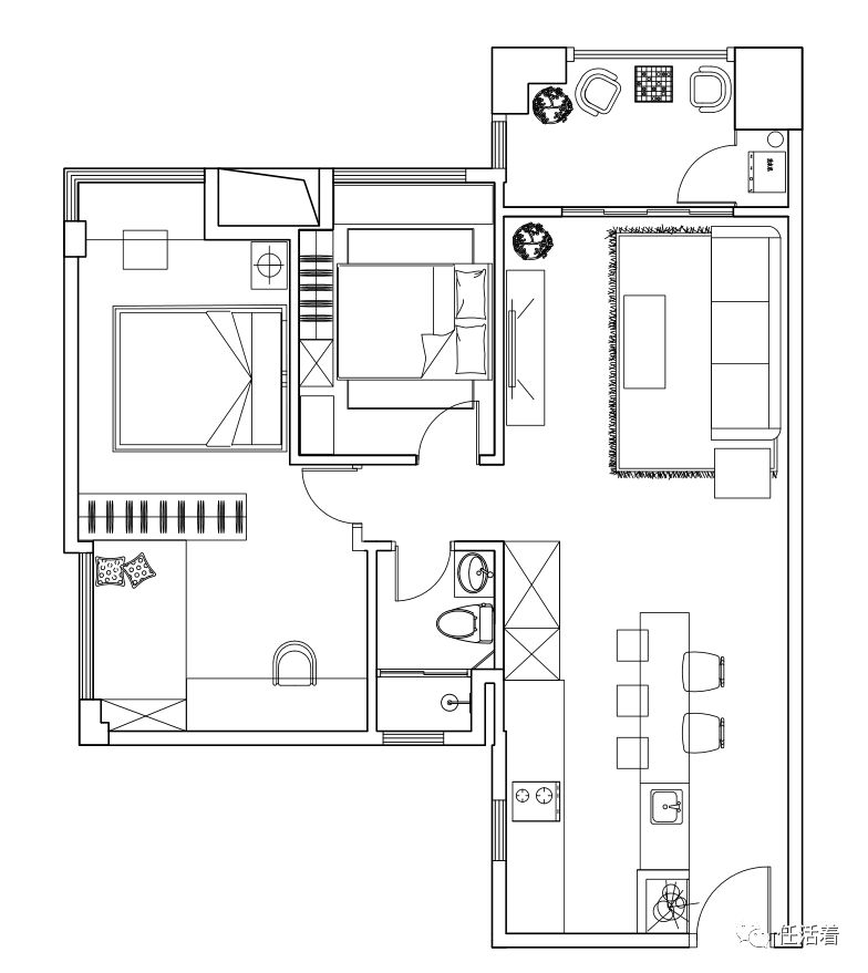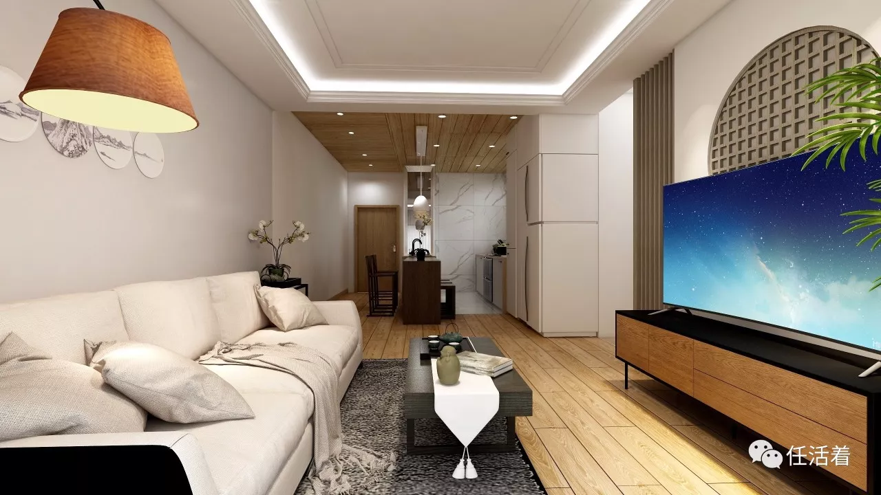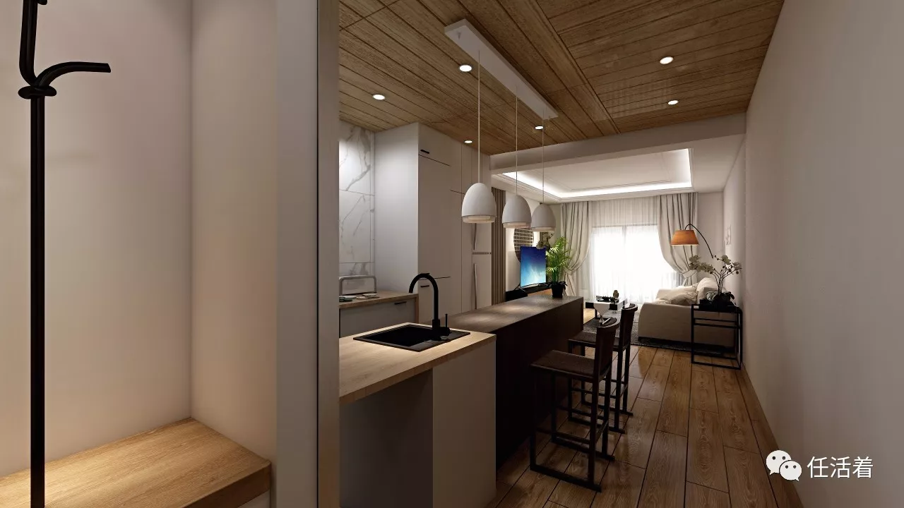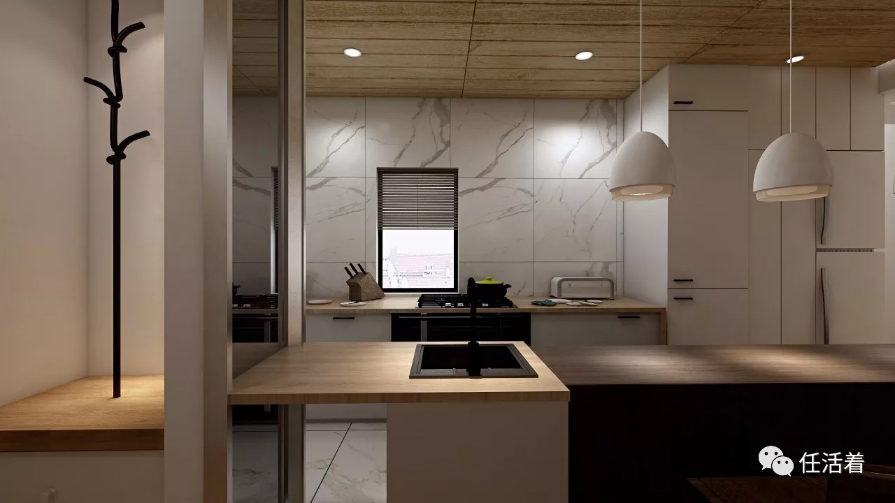 然后再往前走会看到一个开放式的厨房,开放式的厨房放大了整个的空间。