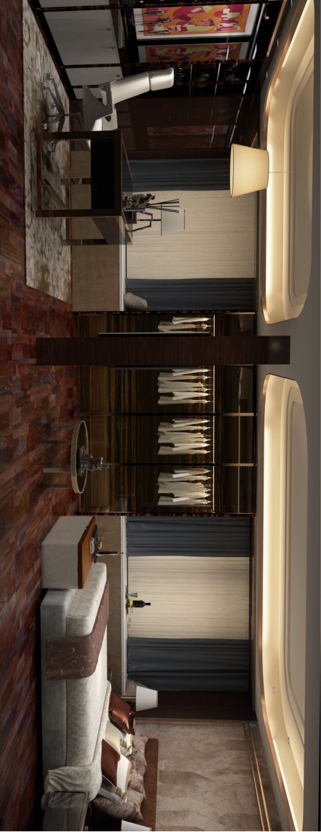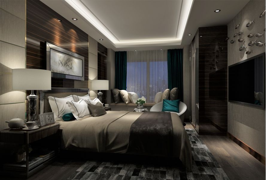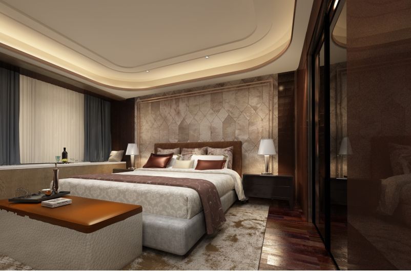 主卧与书房的贯通,木材与生活的融合。将两房连通,增加其空间的大气,使用石材同木材进行装饰,体现一种沉稳大气的感觉,对生活的追求,也是两空间自然的衔接在一起,在满足功能的前提上进一步提升了空间。