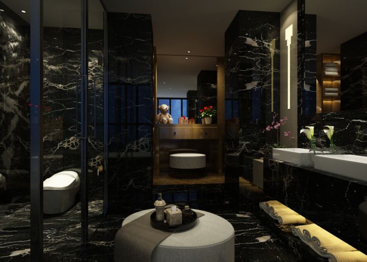 洗浴间采用大理石材质为主,整体统一,功能分区。配合部分木材元素为空间增添几分自然相融的感觉。