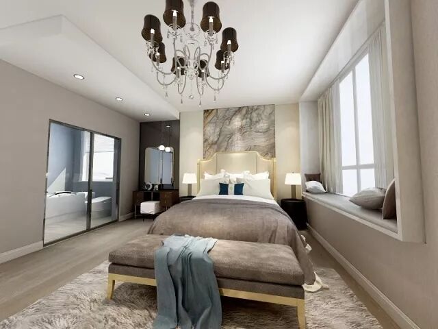 主人房 主人房的空间分隔是最大的,分成了三个空间:卧室套间,观影室,衣帽间。卧室和观影室是用可移动隔断分隔的,一是保证了卧室的私密性,二是可以扩大卧室的使用面积。