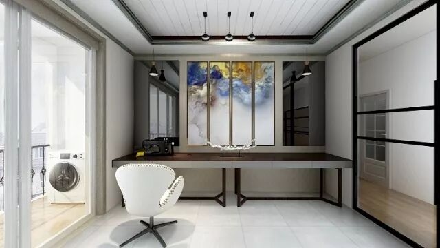 服装设计室 男主人的服装设计室是跟原来厨房及餐厅相互换了,原来厨房的位置变了摄影间,用于服装的拍摄展示。设计间,方便剪裁、设计服装。