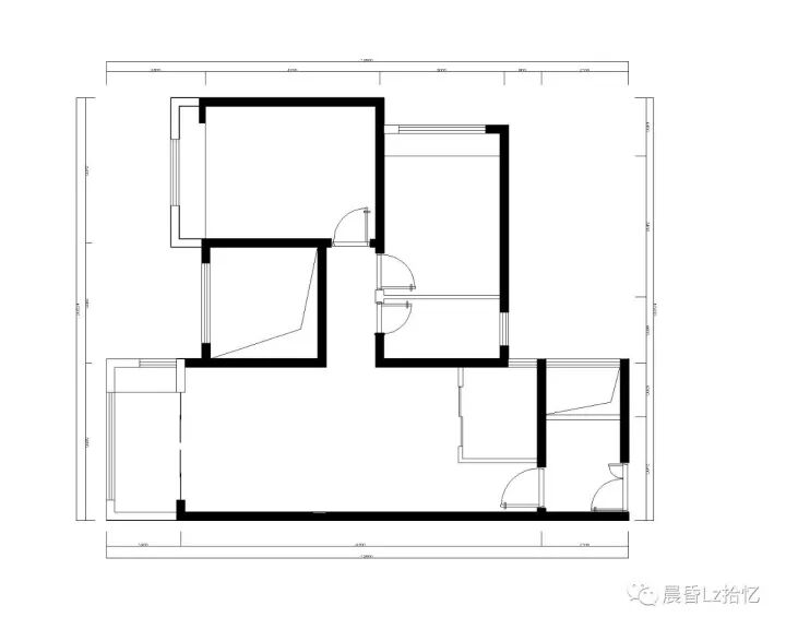 户型由面积不同的方形拼接而成,形成了相对狭小细长的空间。除了房间,厨房和卫生间有窗口之外,客厅和餐厅只有阳台的落地窗用于采光。而客厅和餐厅又是一字型空间,隔断不当会影响采光。