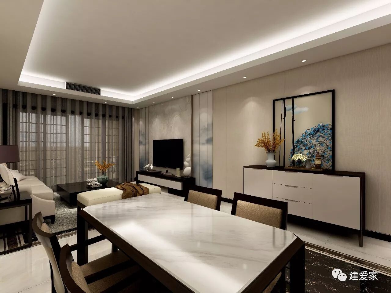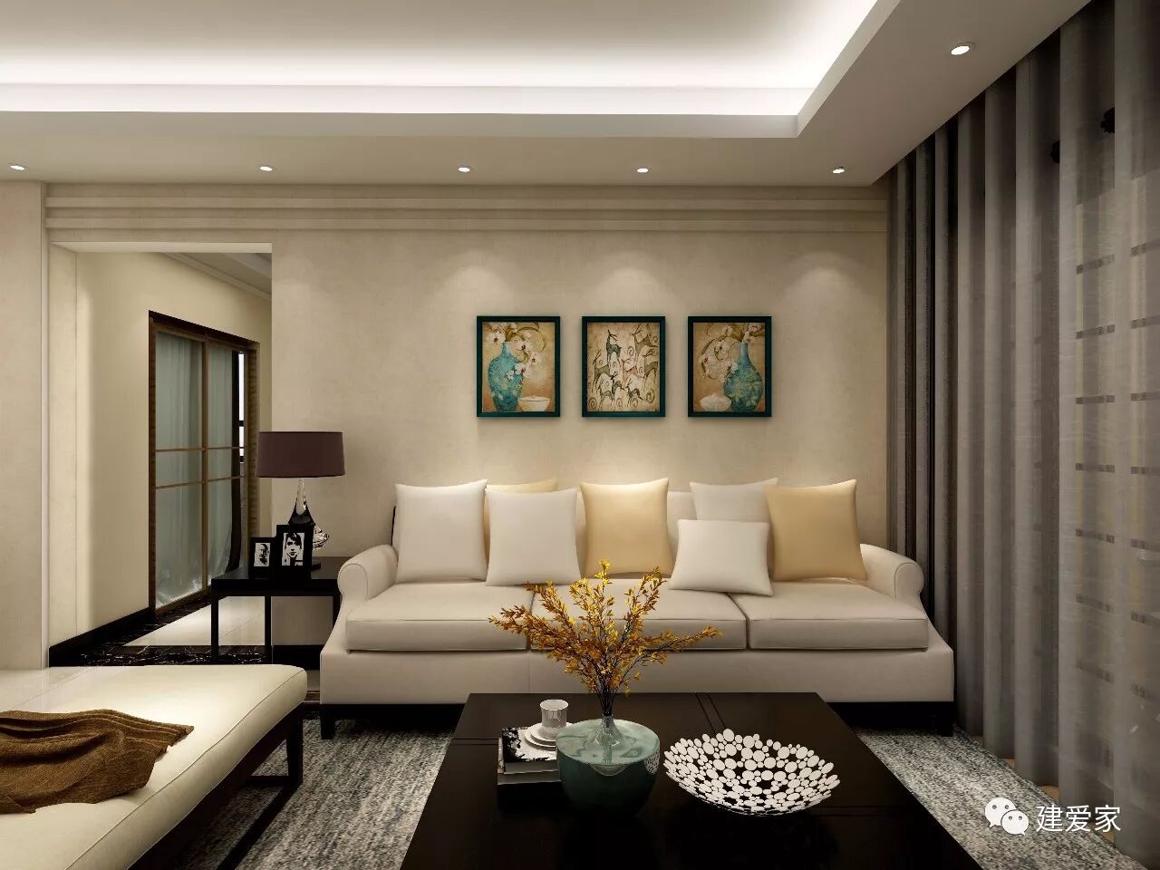 客厅--客厅以“白色为基调”,其他颜色为辅色调。暖色的灯光将家营造出温暖的感觉。采用象牙白瓷砖,显示出他独特的品味。中间墙采用高级背景墙,既大方又有气派,背景左侧则采用木饰面板,让空间更具有整体性,配上挂画使空间更丰富。