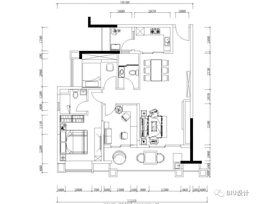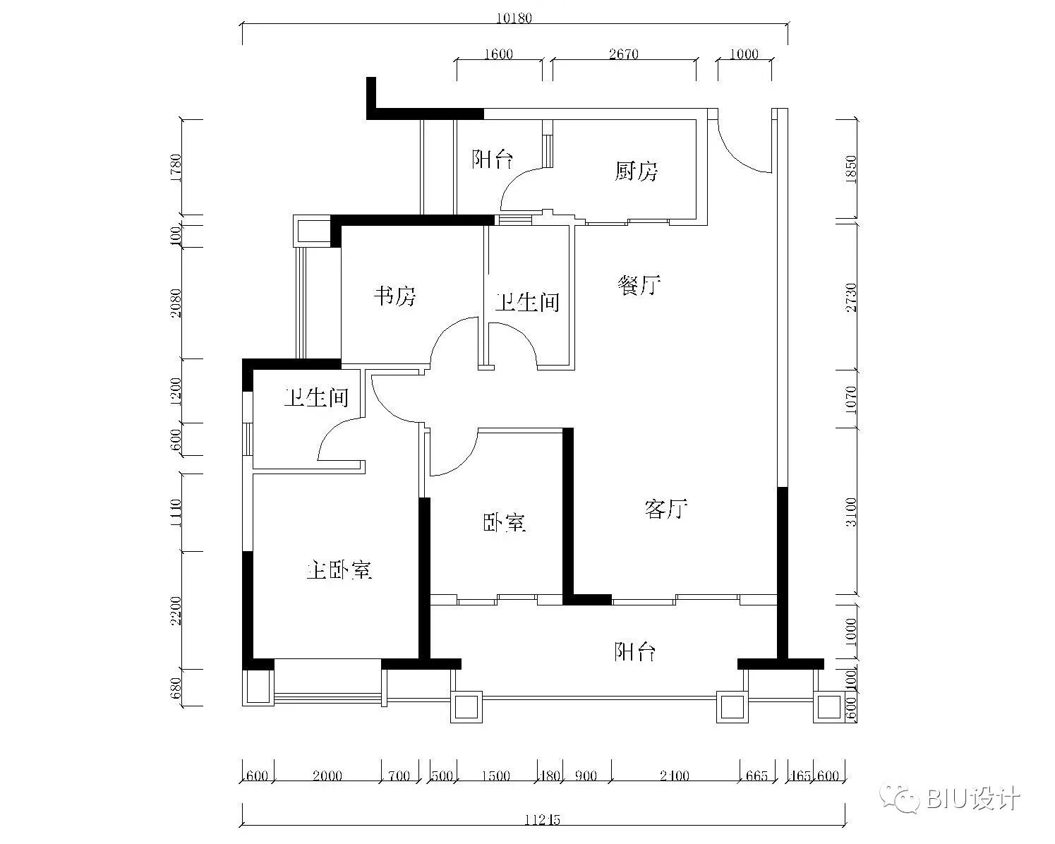 我根据业主的信息分为:一厅一厨两卫两房 加上两个阳台