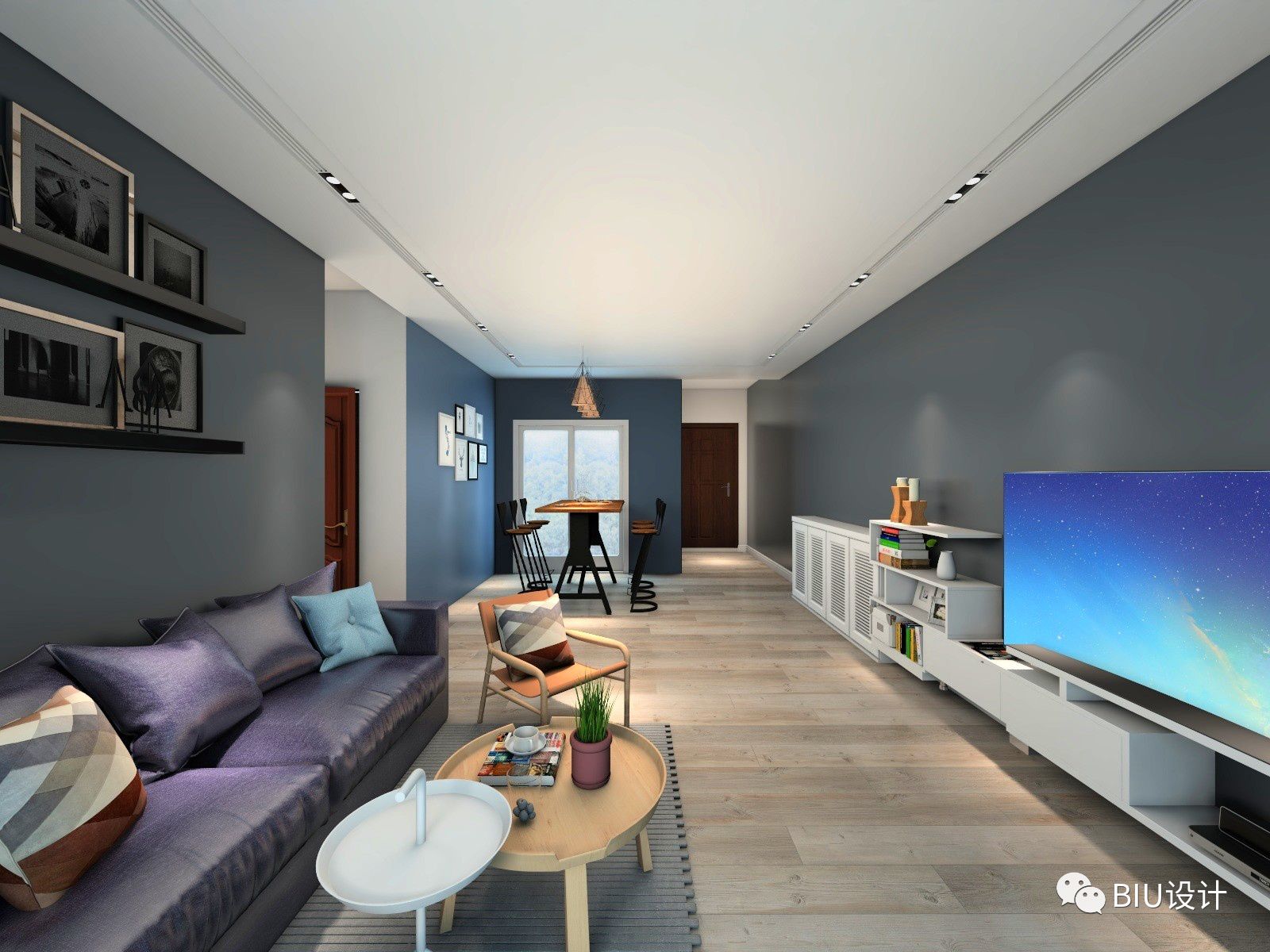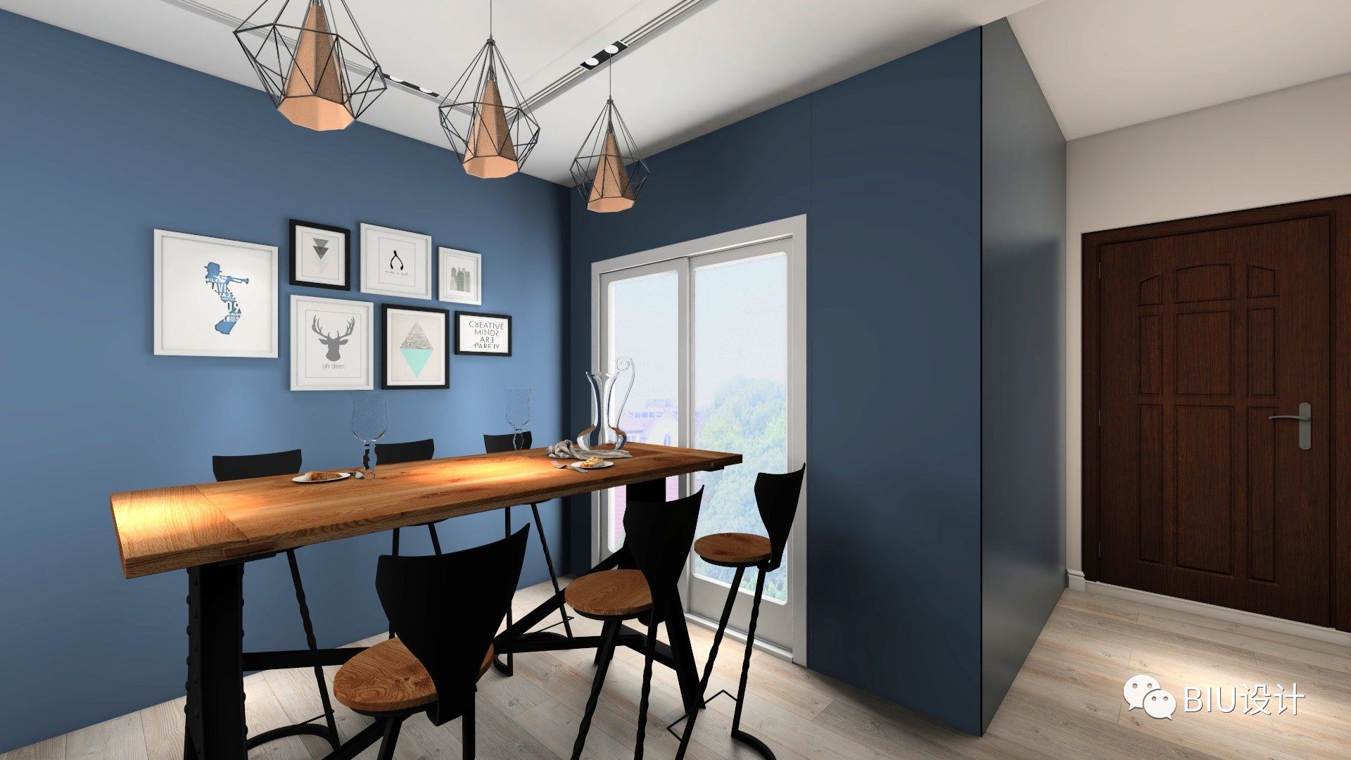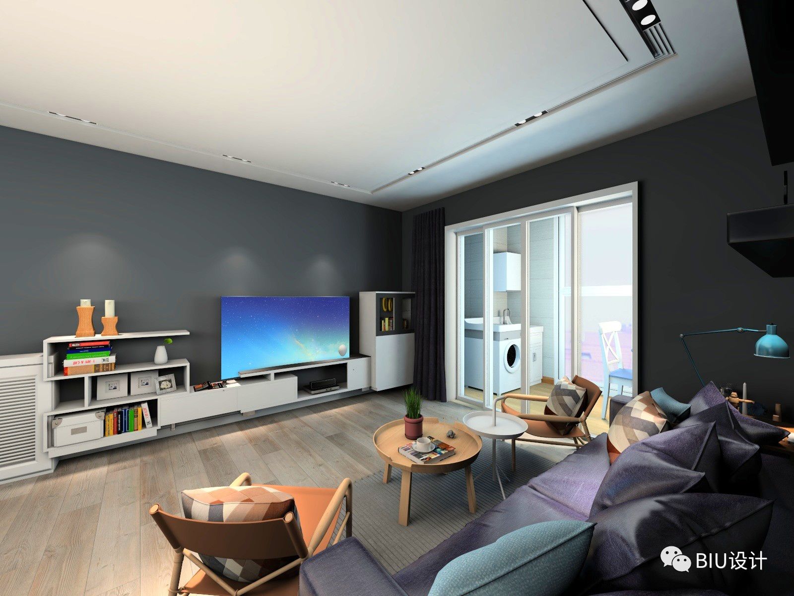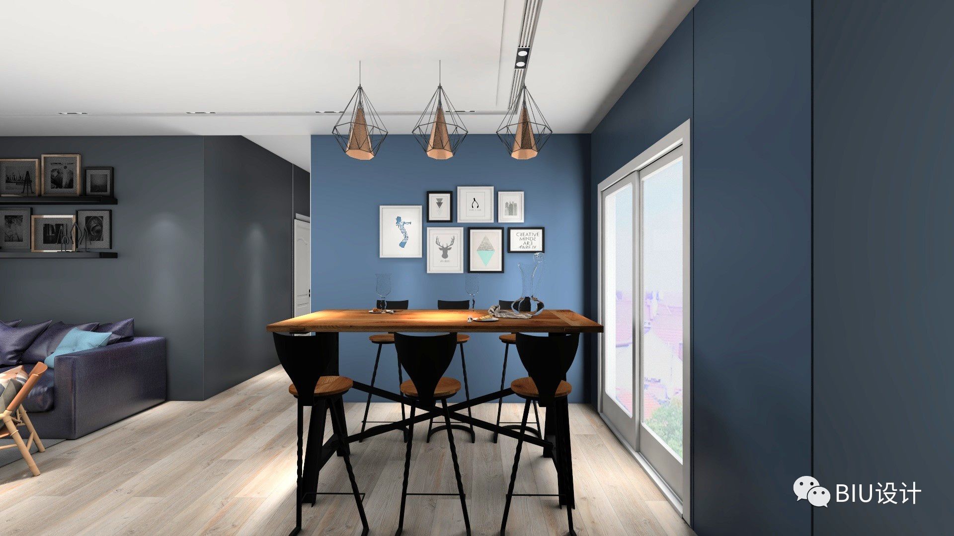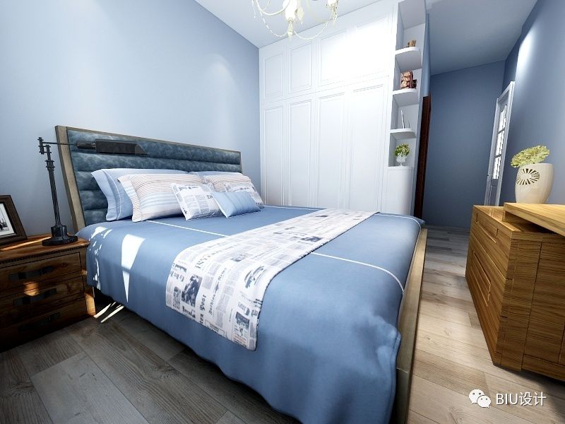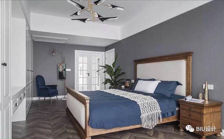 利用简单的木地板的纹理,灰蓝配色,具有强烈的现感
