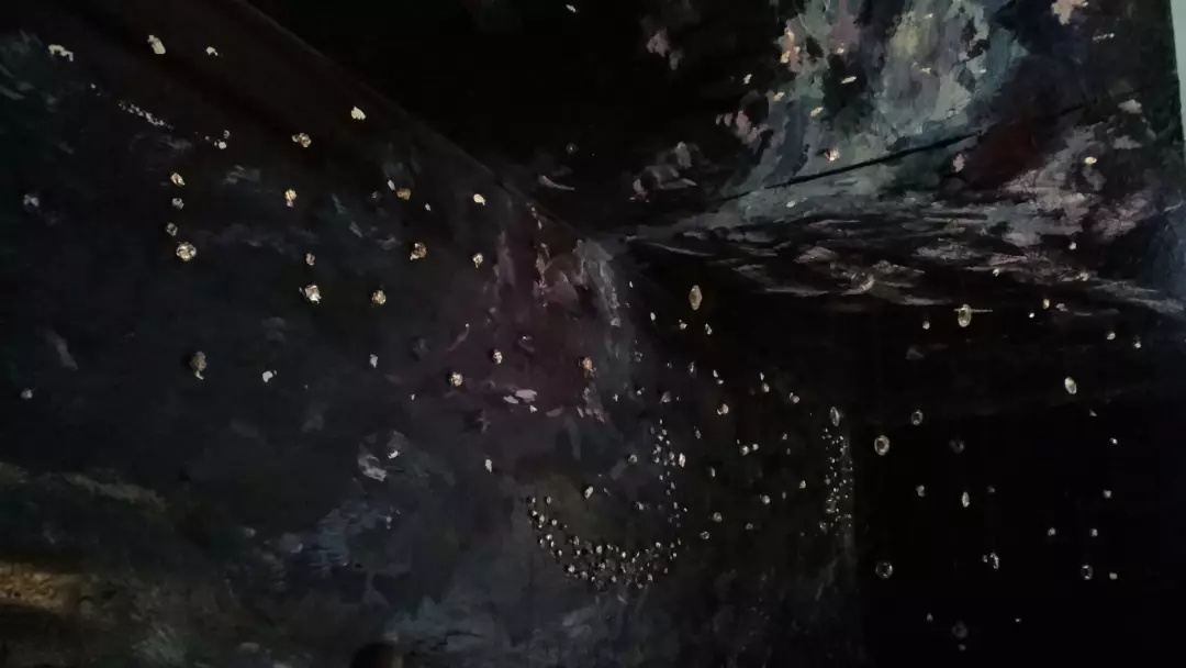 颜料加上画笔产生的神奇效果,锡纸变形后发出的弱弱微光,悬挂的水晶如同你那些珍贵的记忆化作星空,一直守护着你。